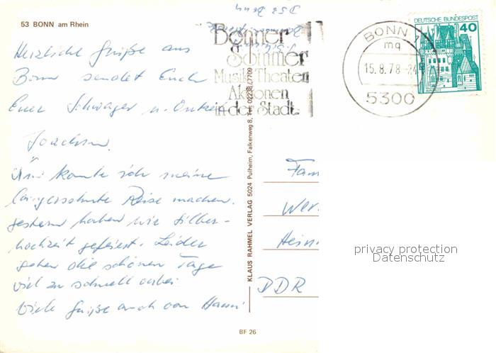 72757969 alte Postkarte Bonn Rhein Bonn-Center Allianzpltaz Rheinufer postalisch gelaufen Erhaltung siehe scans [NatalD47] KatCode: 11110005314000