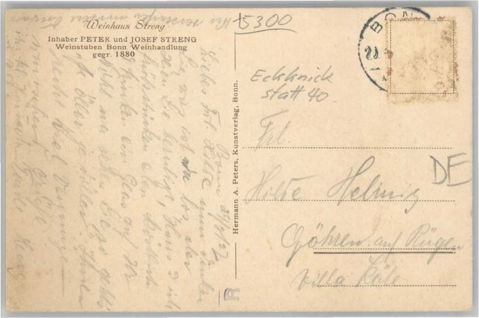 40662675 Bonn Rhein Bonn Weinhaus Streng KatCode 11110005314000