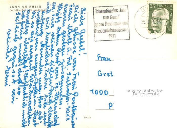 73156536 alte Postkarte Bonn Rhein Buero Hochhaus des Bundestages postalisch gelaufen Erhaltung siehe scans [WerneD78] KatCode: 11110005314000