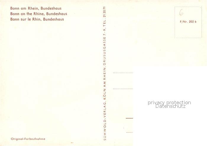 73056863 Bonn Rhein Bundeshaus postalisch nicht gelaufen Erhaltung siehe scans [WerneD78] KatCode: 11110005314000