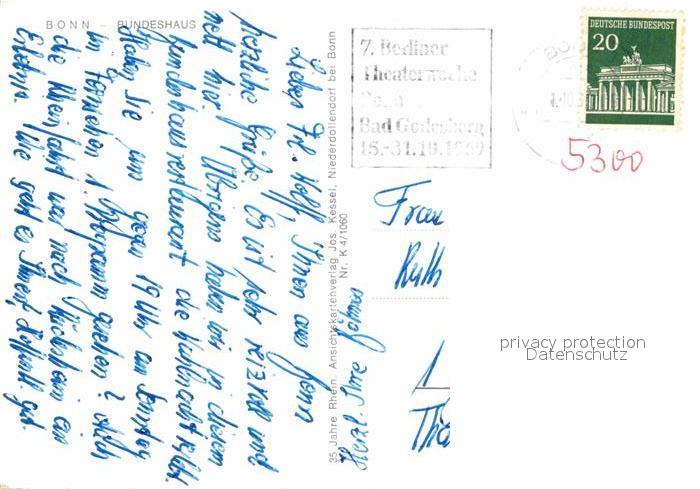 72686433 alte Postkarte Bonn Rhein Bundeshaus postalisch gelaufen Erhaltung siehe scans [FriedD77] KatCode: 11110005314000