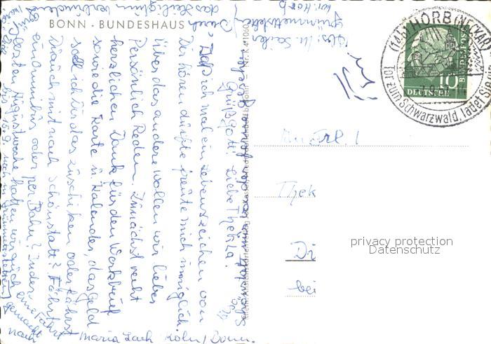 72393379 alte Postkarte Bonn Rhein Bundeshaus postalisch gelaufen Erhaltung siehe scans KatCode: 11110005314000