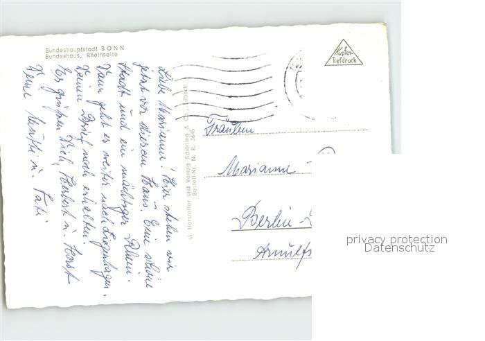 72300762 alte Postkarte Bonn Rhein Bundeshaus postalisch gelaufen Erhaltung siehe scans KatCode: 11110005314000
