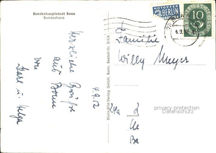 72053369 alte Postkarte Bonn Rhein Bundeshaus postalisch gelaufen Erhaltung siehe scans KatCode: 11110005314000