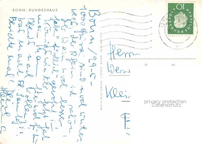 72814108 alte Postkarte Bonn Rhein Bundeshaus Rheinpartie postalisch gelaufen Erhaltung siehe scans [LiesaD40] KatCode: 11110005314000