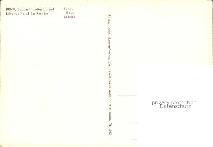 72088321 Bonn Rhein Bundeshausrestaurant postalisch nicht gelaufen Erhaltung siehe scans KatCode: 11110005314000