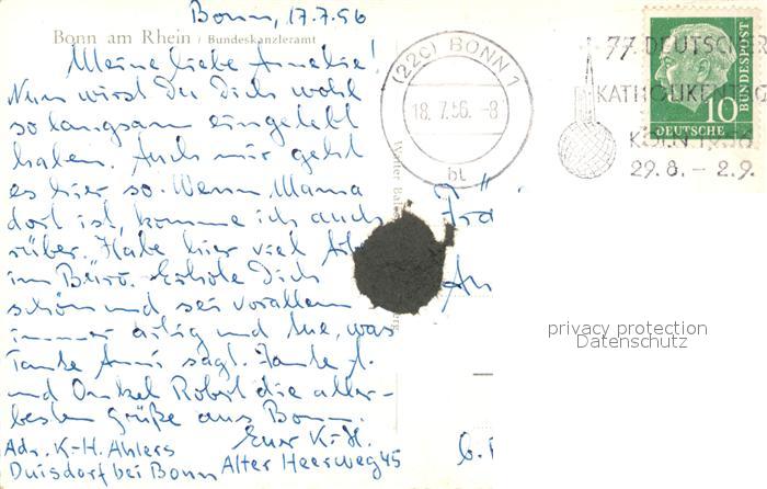 73334204 alte Postkarte Bonn Rhein Bundeskanzleramt postalisch gelaufen Erhaltung siehe scans [WerneD78] KatCode: 11110005314000