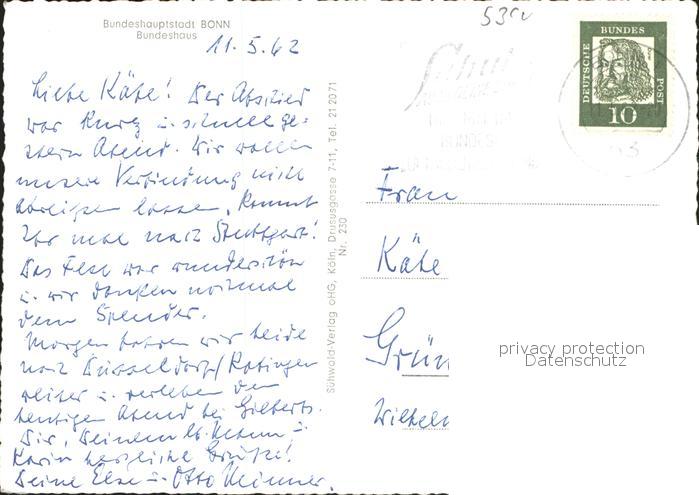 41607184 alte Postkarte Bonn Rhein Fliegeraufnahme Bundeshaus postalisch gelaufen Erhaltung siehe scans KatCode: 11110005314000