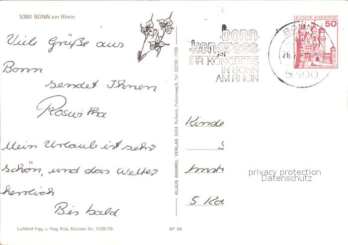 71970931 alte Postkarte Bonn Rhein Fliegeraufnahme Rheinpartie postalisch gelaufen Erhaltung siehe scans KatCode: 11110005314000
