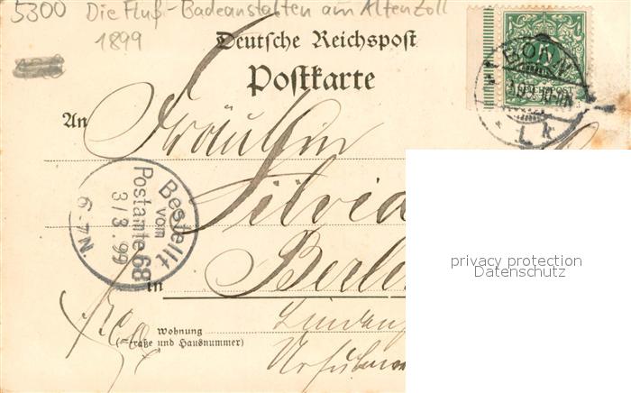 73706140 alte Postkarte Bonn Rhein Fluss-Badeanstalten vom Alten Zoll postalisch gelaufen Erhaltung siehe scans [LiesaD40] KatCode: 11110005314000