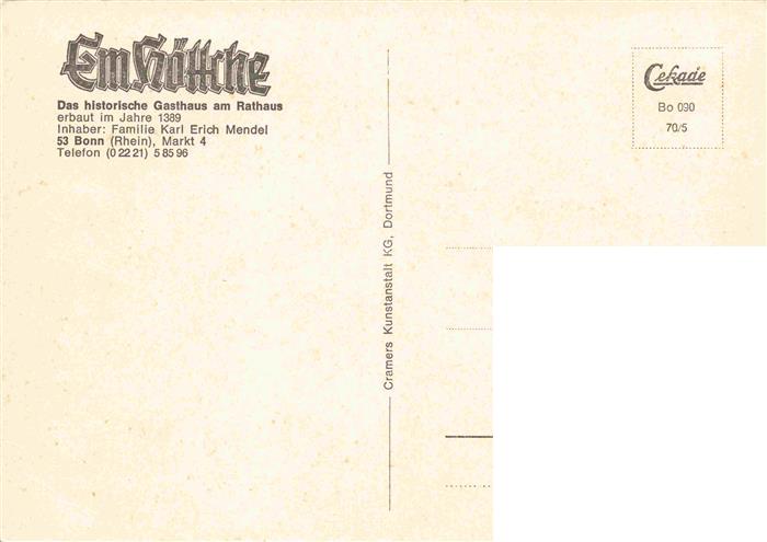 74142862 BONN Rhein Gasthaus am Rathaus postalisch nicht gelaufen Erhaltung siehe scans [IrynaD87] Iryn Katcode 11110005314000