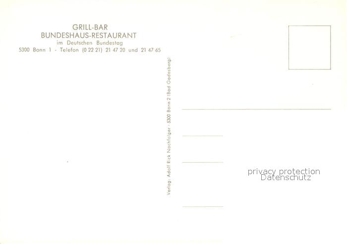 73203529 Bonn Rhein Grill Bar Bundeshaus Restaurant im Deutschen Bundestag postalisch nicht gelaufen Erhaltung siehe scans [FriedD77] KatCode: 11110005314000