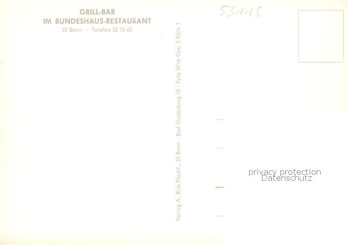 73865198 Bonn Rhein Grill Bar im Bundeshaus Restaurant postalisch nicht gelaufen Erhaltung siehe scans [WerneD78] KatCode: 11110005314000