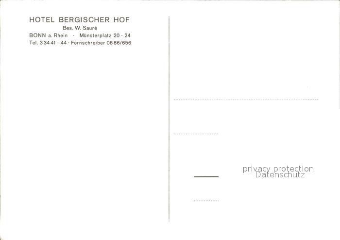 72434653 Bonn Rhein Hotel Bergischer Hof postalisch nicht gelaufen Erhaltung siehe scans KatCode: 11110005314000
