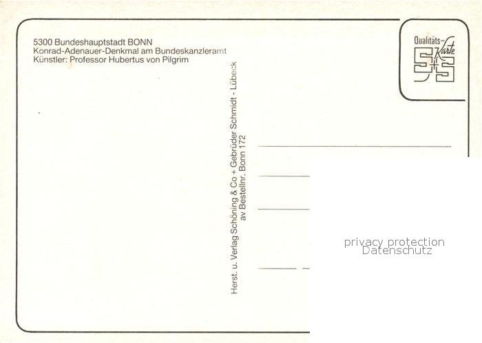 73266010 Bonn Rhein Konrad Adenauer Denkmal am Bundeskanzleramt Kuenstler Prof. Hubertus von Pilgrim postalisch nicht gelaufen Erhaltung siehe scans [FriedD77] KatCode: 11110005314000