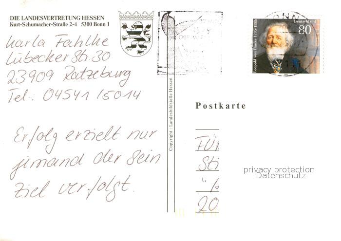 73792840 alte Postkarte Bonn Rhein Landesvertretung Hessen Fliegeraufnahme postalisch gelaufen Erhaltung siehe scans [WerneD78] KatCode: 11110005314000