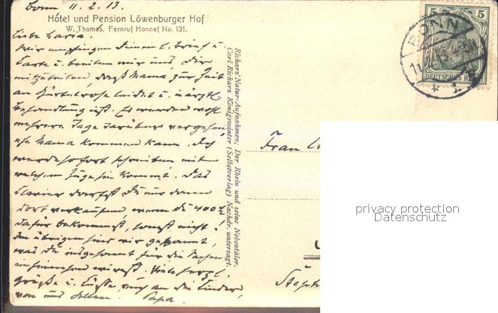 72147166 alte Postkarte Bonn Rhein Loewenburg mit Loewenburger Hof postalisch gelaufen Erhaltung siehe scans KatCode: 11110005314000