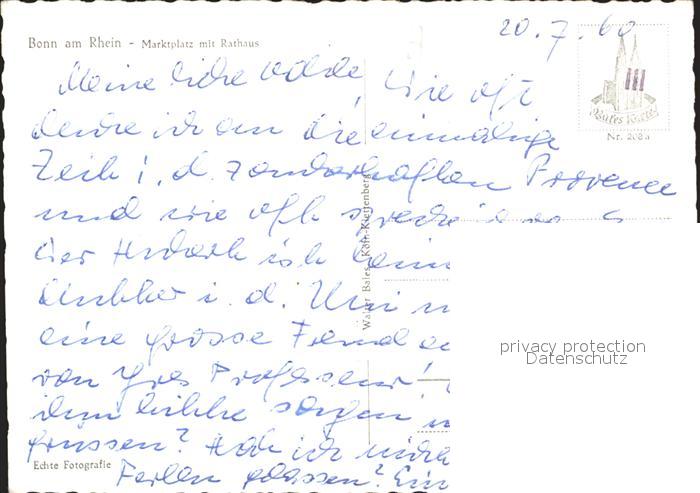 72092086 Bonn Rhein Marktplatz Rathaus postalisch nicht gelaufen Erhaltung siehe scans KatCode: 11110005314000