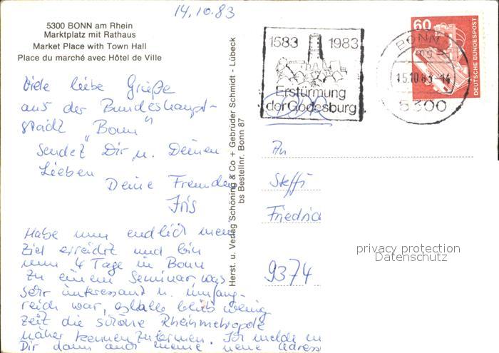 72556568 alte Postkarte Bonn Rhein Marktplatz Rathaus postalisch gelaufen Erhaltung siehe scans [KathaD79] KatCode: 11110005314000
