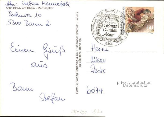 72431482 alte Postkarte Bonn Rhein Martinsplatz postalisch gelaufen Erhaltung siehe scans KatCode: 11110005314000