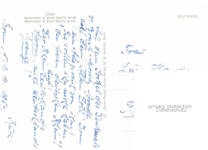 72705170 alte Postkarte Bonn Rhein Monument Ernst Moritz Arndt postalisch gelaufen Erhaltung siehe scans [AndreD76] KatCode: 11110005314000