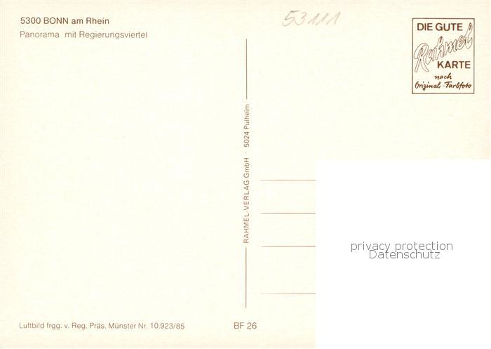 73867916 Bonn Rhein Panorama mit Regierungsviertel postalisch nicht gelaufen Fliegeraufnahme Erhaltung siehe scans [FriedD77] KatCode: 11110005314000