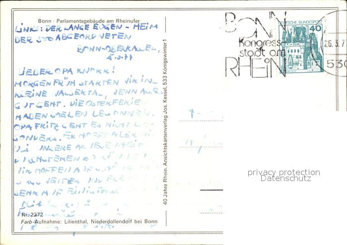 72455163 alte Postkarte Bonn Rhein Parlamentsgebaeude Rheinufer postalisch gelaufen Erhaltung siehe scans KatCode: 11110005314000