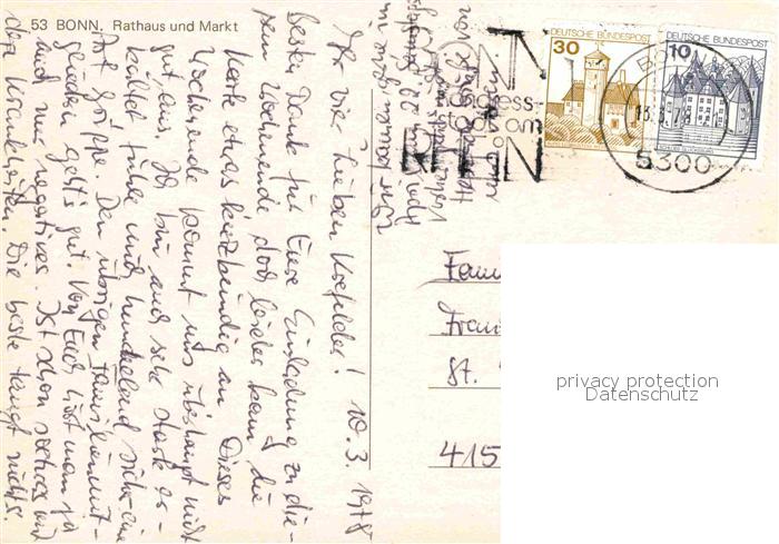 72705708 alte Postkarte Bonn Rhein Rathaus Marktplatz postalisch gelaufen Erhaltung siehe scans [AndreD76] KatCode: 11110005314000