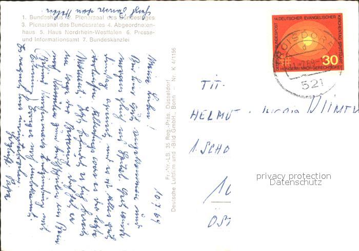 71903334 alte Postkarte Bonn Rhein Regierungsviertel Fliegeraufnahme postalisch gelaufen Erhaltung siehe scans KatCode: 11110005314000