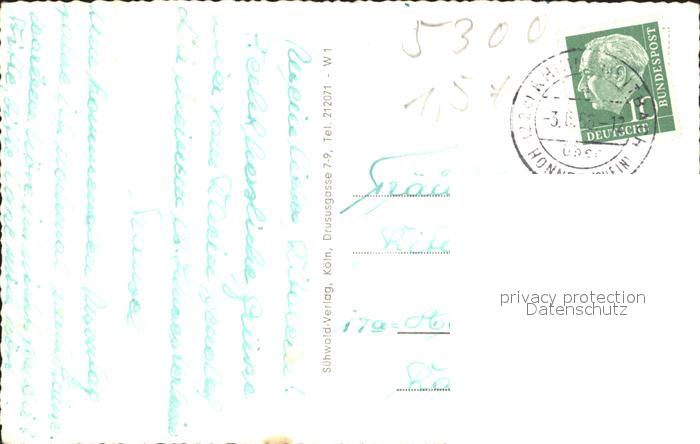 72180859 alte Postkarte Bonn Rhein Rheinbruecke Am alten Zoll Rheinpartie Bundeshaus postalisch gelaufen Erhaltung siehe scans KatCode: 11110005314000