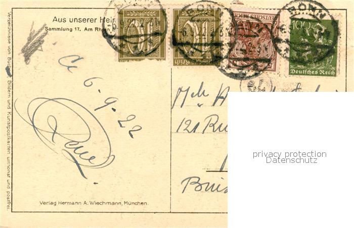 73570868 alte Postkarte Bonn Rhein Rheinfels postalisch gelaufen Erhaltung siehe scans [LiesaD40] KatCode: 11110005314000