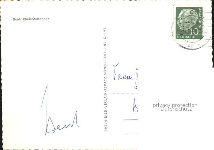 72451981 alte Postkarte Bonn Rhein Rheinpromenade postalisch gelaufen Erhaltung siehe scans KatCode: 11110005314000