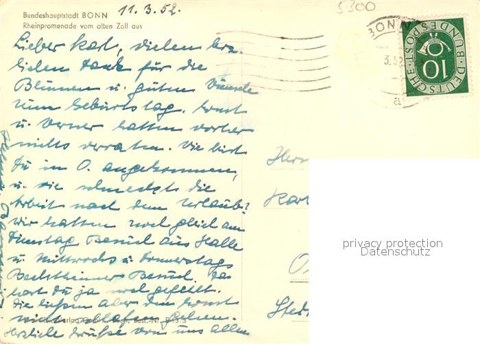 73037239 alte Postkarte Bonn Rhein Rheinpromenade postalisch gelaufen Erhaltung siehe scans [KathaD81] KatCode: 11110005314000