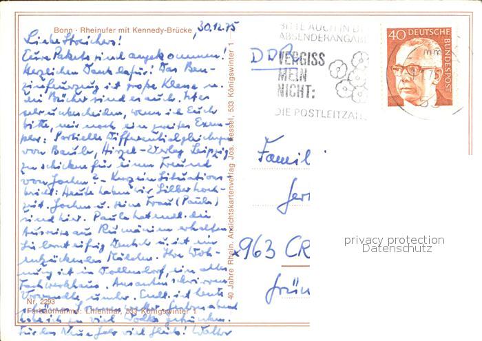 72455099 alte Postkarte Bonn Rhein Rheinufer Kennedy Bruecke postalisch gelaufen Erhaltung siehe scans KatCode: 11110005314000
