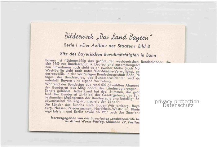 74112691 BONN Rhein Sitz des Bayerischen Bevollmaechtigten in Bonn Sammelbild 7×10 cm postalisch nicht gelaufen Werbekarte (keine Postkarte) Erhaltung siehe scans [WerneD78] Werbekarte (keine Postkarte) Wern Katcode 11110005314000