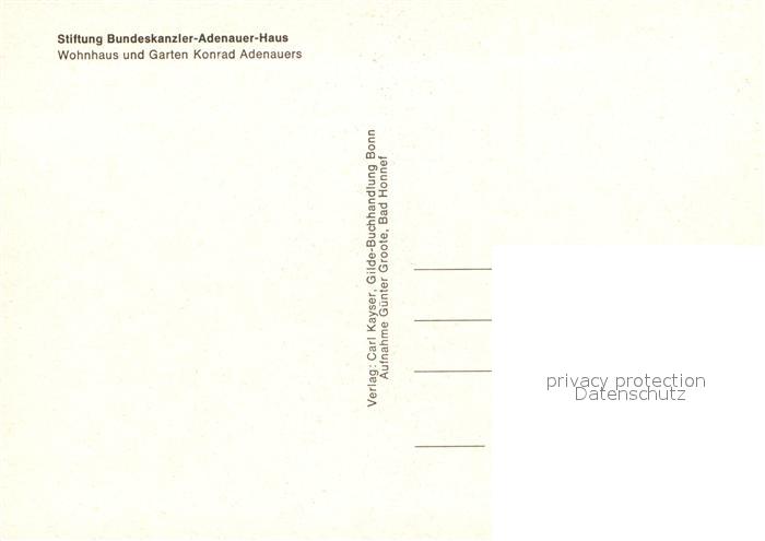 72958608 Bonn Rhein Stiftung Bundeskanzler Adenauer-Haus Wohnhaus und Garten Konrad Adenauers postalisch nicht gelaufen Erhaltung siehe scans [LiesaD40] KatCode: 11110005314000