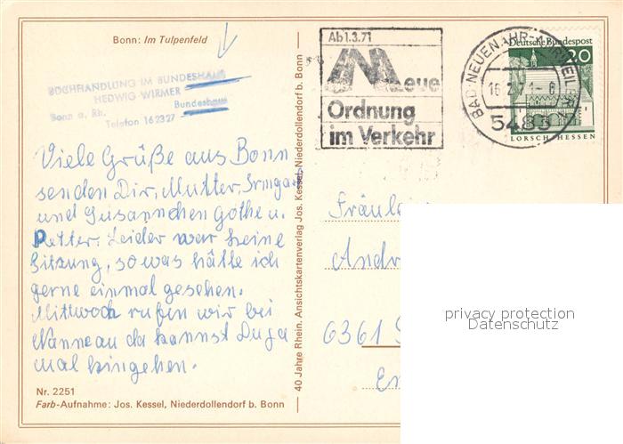 73272112 alte Postkarte Bonn Rhein Tulpenfeld Gebaeudeensemble Hochhaus postalisch gelaufen Erhaltung siehe scans [FriedD77] KatCode: 11110005314000