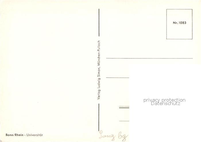 72920622 Bonn Rhein Universitaet postalisch nicht gelaufen Erhaltung siehe scans [PaolaD17] KatCode: 11110005314000