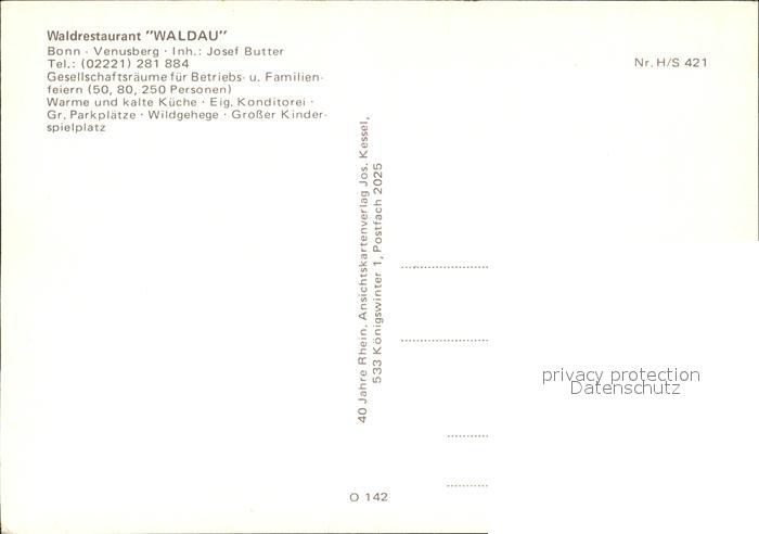 72504838 Bonn Rhein Venusberg Waldrestaurant Waldau postalisch nicht gelaufen Erhaltung siehe scans KatCode: 11110005314000