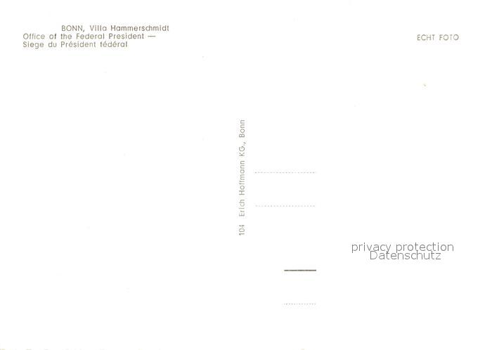 73161007 Bonn Rhein Villa Hammerschmidt Sitz des Bundespraesidenten postalisch nicht gelaufen Erhaltung siehe scans [FriedD77] KatCode: 11110005314000