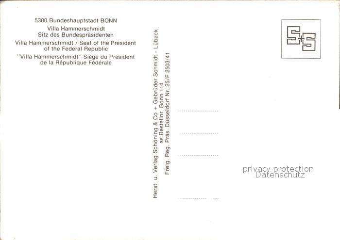 72285618 Bonn Rhein Villa Hammerschmidt Sitz des Bundespraesidenten Fliegeraufnahme postalisch nicht gelaufen Erhaltung siehe scans KatCode: 11110005314000