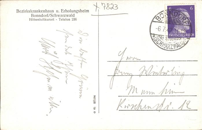 41394160 Bonndorf Schwarzwald Bezirkskrankenhaus KatCode 11110008337022