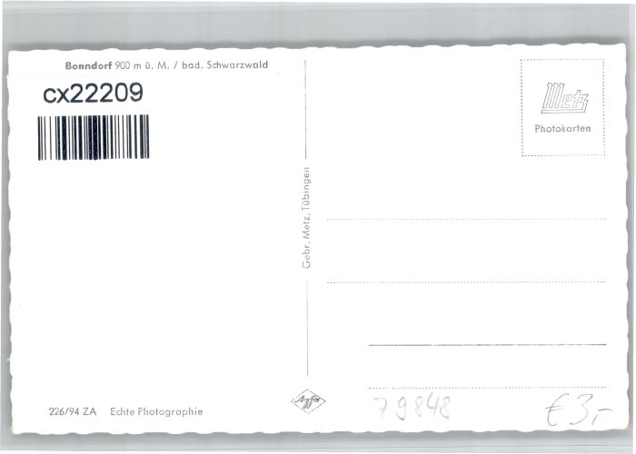 30739607 Bonndorf Schwarzwald Bonndorf postalisch nicht gelaufen KatCode: 11110008337022