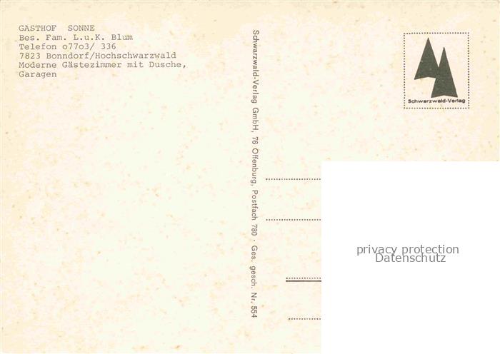74153226 Bonndorf Schwarzwald BW Gasthof Sonne postalisch nicht gelaufen Erhaltung siehe scans [WerneD78] KatCode: 11110008337022