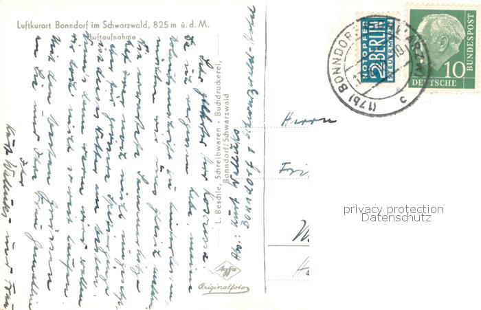 73759484 alte Postkarte Bonndorf Schwarzwald Fliegeraufnahme postalisch gelaufen Erhaltung siehe scans [LiesaD40] KatCode: 11110008337022