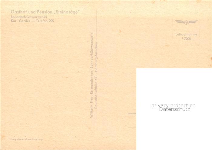 73209474 Bonndorf Schwarzwald Gasthof Pension Steinasaege Fliegeraufnahme postalisch nicht gelaufen Erhaltung siehe scans [FriedD77] KatCode: 11110008337022