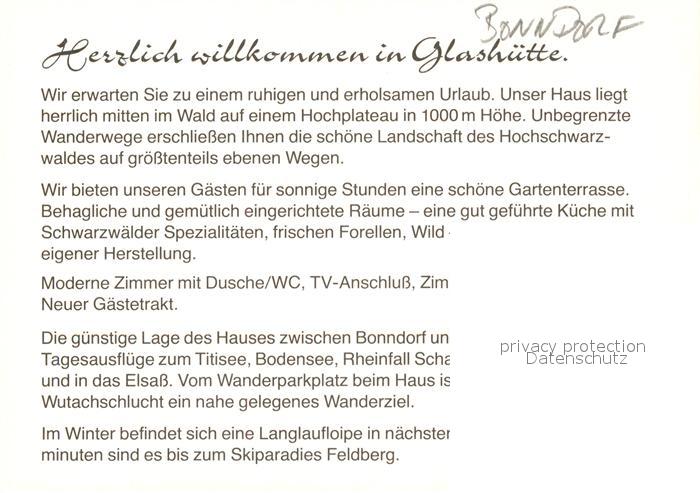 73094711 Bonndorf Schwarzwald Hoehengasthof Glashuette postalisch nicht gelaufen Keine Postkarte (siehe scan) Erhaltung siehe scans [NatalD47] KatCode: 11110008337022