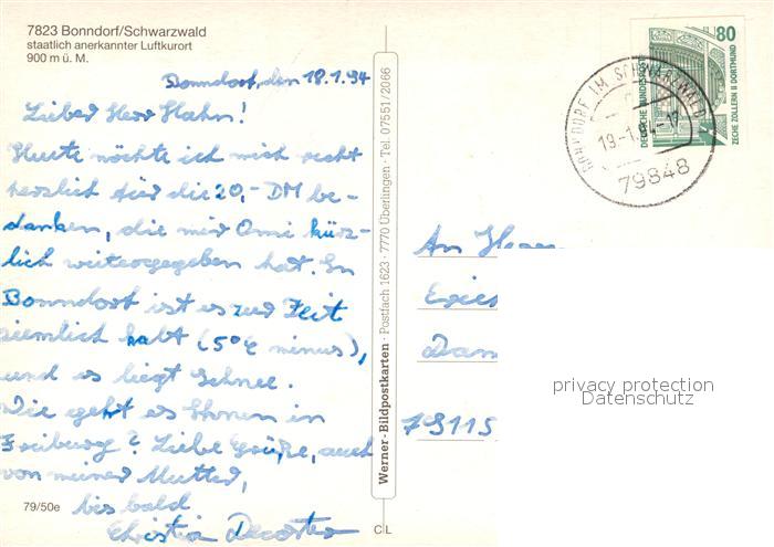 73477980 alte Postkarte Bonndorf Schwarzwald Panorama postalisch gelaufen Erhaltung siehe scans [FriedD77] KatCode: 11110008337022