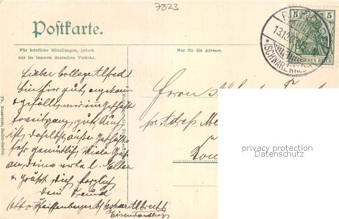 43286186 alte Postkarte Bonndorf Schwarzwald Panorama Lothenbachklamm Wasserfall postalisch gelaufen Erhaltung siehe scans [FriedD77] KatCode: 11110008337022