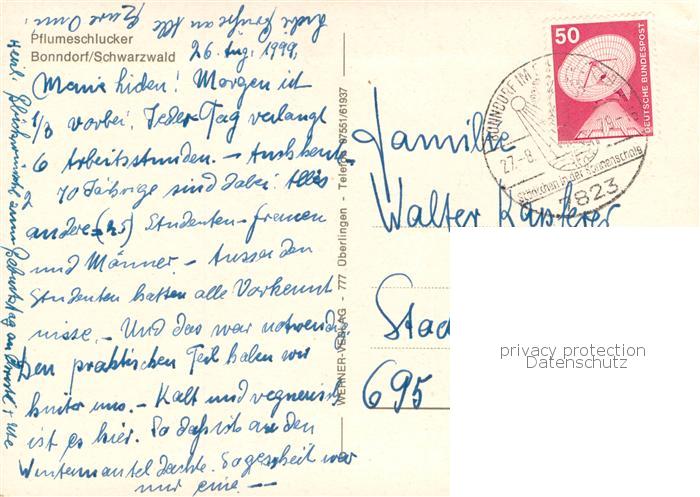 73778430 alte Postkarte Bonndorf Schwarzwald Pflumeschlucker postalisch gelaufen Erhaltung siehe scans [WerneD78] KatCode: 11110008337022